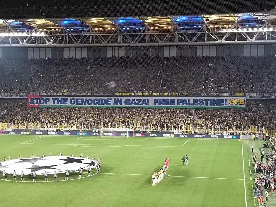 أظهرت جماهير فريق فنربخشة التركي، تضامنها ودعمها الكبير للشعب الفلسطيني تجاه كل ما يتعرضون له، من من عمليات إبادة جماعية وهجوم عدواني من قبل جيش الاحتلال الإسرائيلي، خلال مباراة فريقها أمام بنفيكا في تصفيات دوري أبطال أوروبا أمس.