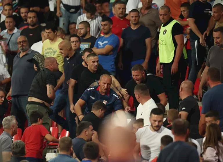 شهدت مباراة صربيا وإنجلترا في تصفيات كأس العالم 2026، اندلاع أعمال شغب شجار بين المشجعين، وتدخل الشرطة في المشهد.