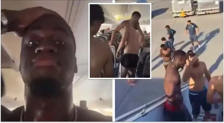 وانتشرت صورا للاعبي موناكو، على مواقع التواصل الاجتماعي، وهم عراة الصدور ويتصببون عرقاً داخل الطائرة.