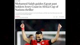 وتمكن الفراعنة من إقصاء حامل اللقب عقب الفوز بنتيجة 3-2 في المباراة التي أُقيمت مساء أمس السبت، ليحجز المنتخب المصري مقعده في نصف نهائي البطولة، بقيادة نجمه محمد صلاح، ويخطف أنظار الصحف العالمية.