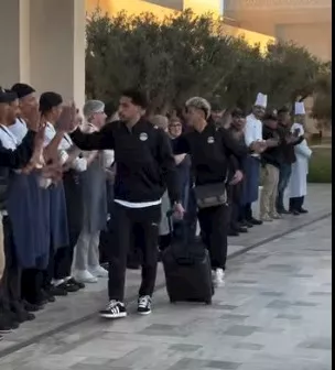 وقام طاقم العمل في الفندق، الذي أقامت به بعثة منتخب مصر منذ بداية البطولة، ممرا شرفيا للاعبين والجهاز الفني، خلال مغادرتهم الفندق للاتجاه إلى المطار استعدادا للسفر إلى مدينة طنجة.