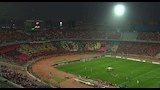 ورفعت جماهير المارد الأحمر المتواجدة في المدرجات، لافتات تحمل رقم 74 وهو عدد شهداء النادي، بجانب لافتة كتب عليها: "لن ننساكم، دول ناس صورها باقية لسه في مدرجاتنا".
