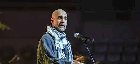 وكان بيب جوارديولا قد ندّد بجرائم الاحتلال الإسرائيلي، خلال حفل ثقافي لدعم فلسطين، وظهر مرتديًا "الكوفية الفلسطينية"، وقال: "عندما أرى طفلًا خلال العامين الأخيرين في الصور المتداولة على وسائل التواصل الاجتماعي أو على التلفاز، وهو يصوّر نفسه متوسلًا ويسأل: أين أمه التي دُفنت تحت الأنقاض وهو لا يعلم ذلك بعد؟ أشعر أننا تركناهم وحدهم، متروكين، مهملين".