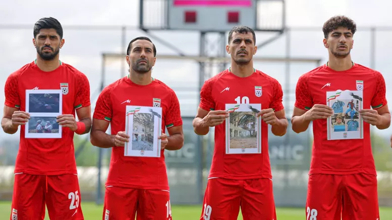 لاعبو إيران يرفعون صور شهداء الحرب