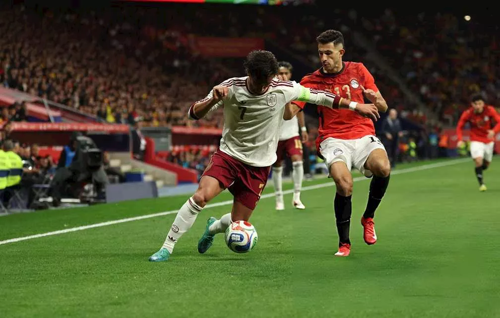 يسيطر التعادل السلبي على مجريات مباراة مصر وإسبانيا الودية، المقامة حاليا على ملعب" آر سي دي إي"، ضمن استعدادات الثنائي لكأس العالم 2026.