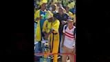 حيث رصدت كاميرات المباراة، مشجعًا من جنوب إفريقيا يقف بين مدرجات جماهير صن داونز، ويرتدي قميص الزمالك، مما لفت الأنظار إليه بشدة.