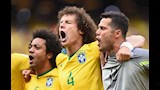 يظهر لاعبو منتخب البرازيل؛ ديفيد لويز، جوليو سيزار، وذلك قبل مبارتهم ضد منتخب المكسيك عام 2014.
