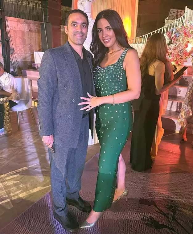 3 صور لجمال حمزة وزوجته في حفل زفاف محمد غانم