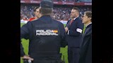ومع استمرار إلقاء الأشياء على أرض الملعب، اضطر الحكم إلى إيقاف اللعب مؤقتًا، رافعًا في يده إحدى الزجاجات التي سقطت وهو يتجه نحو مندوب نادي إشبيلية. وفي تلك اللحظة صدر إعلان عبر نظام مخاطبة الجماهير يحذر من رمي أي أجسام داخل الملعب.