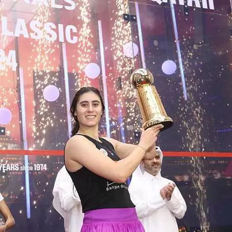 وتلعب صاحبة الـ 30 عاما، ضمن صفوف فريق سبورتنج، تحتل حاليا المركز الرابع في التصنيف العالمي للاعبات الإسكواش.