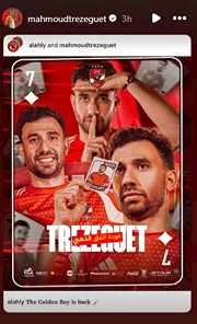 وحرص محمود حسن تريزيجيه، على نشر صورة عبر حسابه الرسمي على "إنستجرام"، من الفيديو الخاص بتقديمه لاعبا للنادي الأهلي.