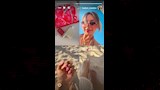 واستعرضت زوجة السولية أظافرها منقوشة بالمانكير بجانب ظهورها على شاطيء البحر.