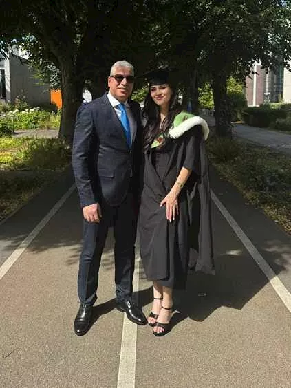 ونشر جمعة منذ عدة أيام، مجموعة من الصور له رفقة ابنته حبيبة، خلال حفل تخرجها من جامعة ليفربول قسم القانون.