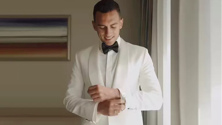كما شارك متابعيه بمقطع فيديو من استعداده وظهوره بالبدلة البيضاء قبل انطلاق حفل زفافه مساء اليوم الجمعة.