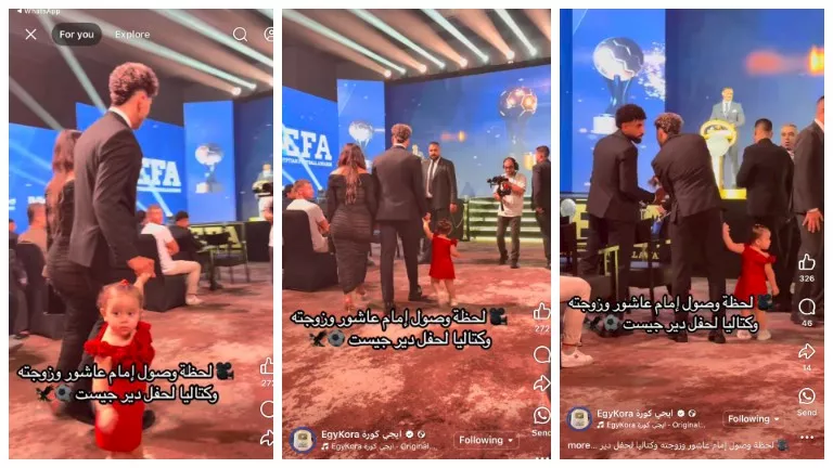 وحرص عاشور على حمل ابنته "كتاليا" خلال حصده جائزة أفضل لاعب في مصر، للمرة الثانية التانية على التوالي.