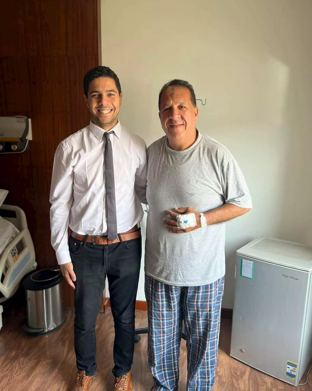 وتابع حديثه قائلا:"أشكر زوجتي التي تساندني دائماً، والتي أتعبها كثيراً أثناء مرضي، كما أتقدم بالشكر الكبير لأخي وصديقي الدكتور يوسف أمين فهمي، أخصائي القلب بمستشفى السعودي الألماني، الذي بفضل الله وحده قام بإنقاذي في اللحظات الحرجة للمرة الثانية وساندني في هذه المحنة المرضية".
