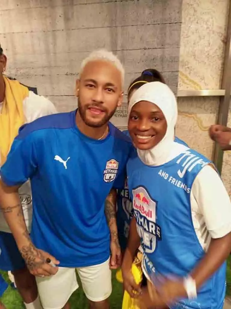 روت النيجيرية زلفى عبد العزيز لاعبة فريق السيدات بنادي اتحاد بسيون، كواليس لقائها بالنجم البرازيلي نيمار جونيور لاعب سانتوس الحالي وبرشلونة السابق.