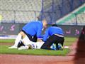 تعرض لاعب الزمالك، محمود علاء، لإصابة دموية خلال إحدى الكرات المشتركة مع لاعبي فريق المنيا.