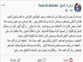 لم يكن بوست "الاعتذار المزعوم" هو التدوينة الوحيدة المزيفة التي تم تداولها بكثرة مع تصاعد أزمة تركي آل الشيخ وإدارة النادي الأهلي، فقد تداول نشطاء تدوينة للرجل يهاجم فيها الزمالكاوية.