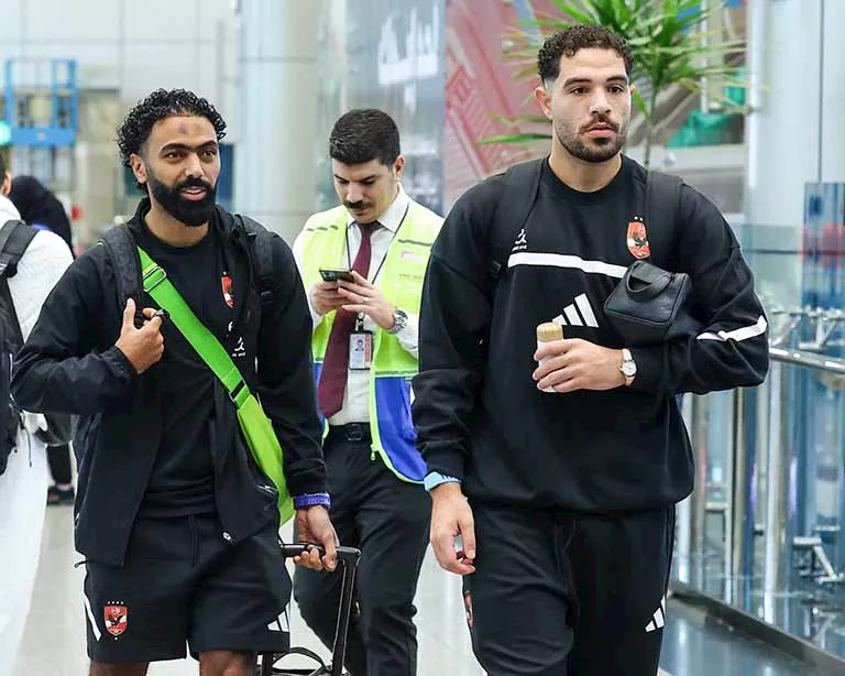 توافد لاعبو الفريق الأول لكرة القدم بالنادي الأهلي، على مطار القاهرة استعدادا للسفر مع البعثة المتجهة إلى دولة الإمارات العربية المتحدة، لخوض منافسات بطولة السوبر المصري للأبطال.