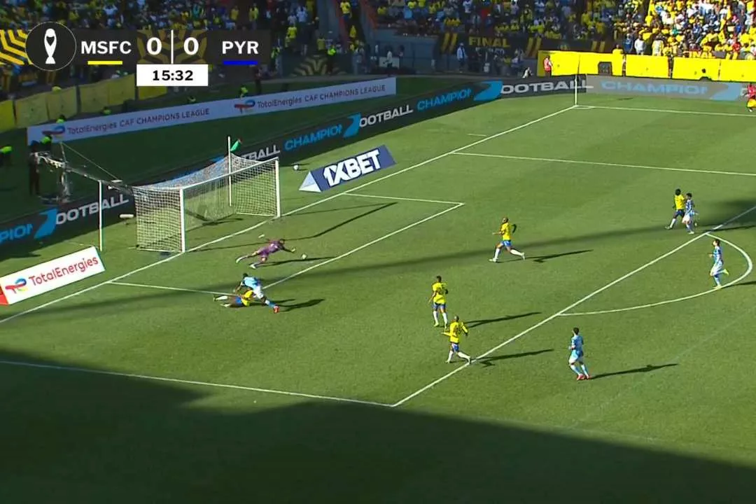 ومرر وليد الكرتي كرة بينية لزميله محمد عاطف "قطة" على يمين منطقة الجزاء بالدقيقة (4) ليرسل كرة عرضية وصلت لإبراهيم عادل الذي سدد الكرة ولكن فقدت قوتها بالارتطام في دفاع الفريق الجنوب أفريقي لتصل إلى حارس المرمى سهلة وسط مطالبات باحتساب ركلة جزاء لصالح بيراميدز.