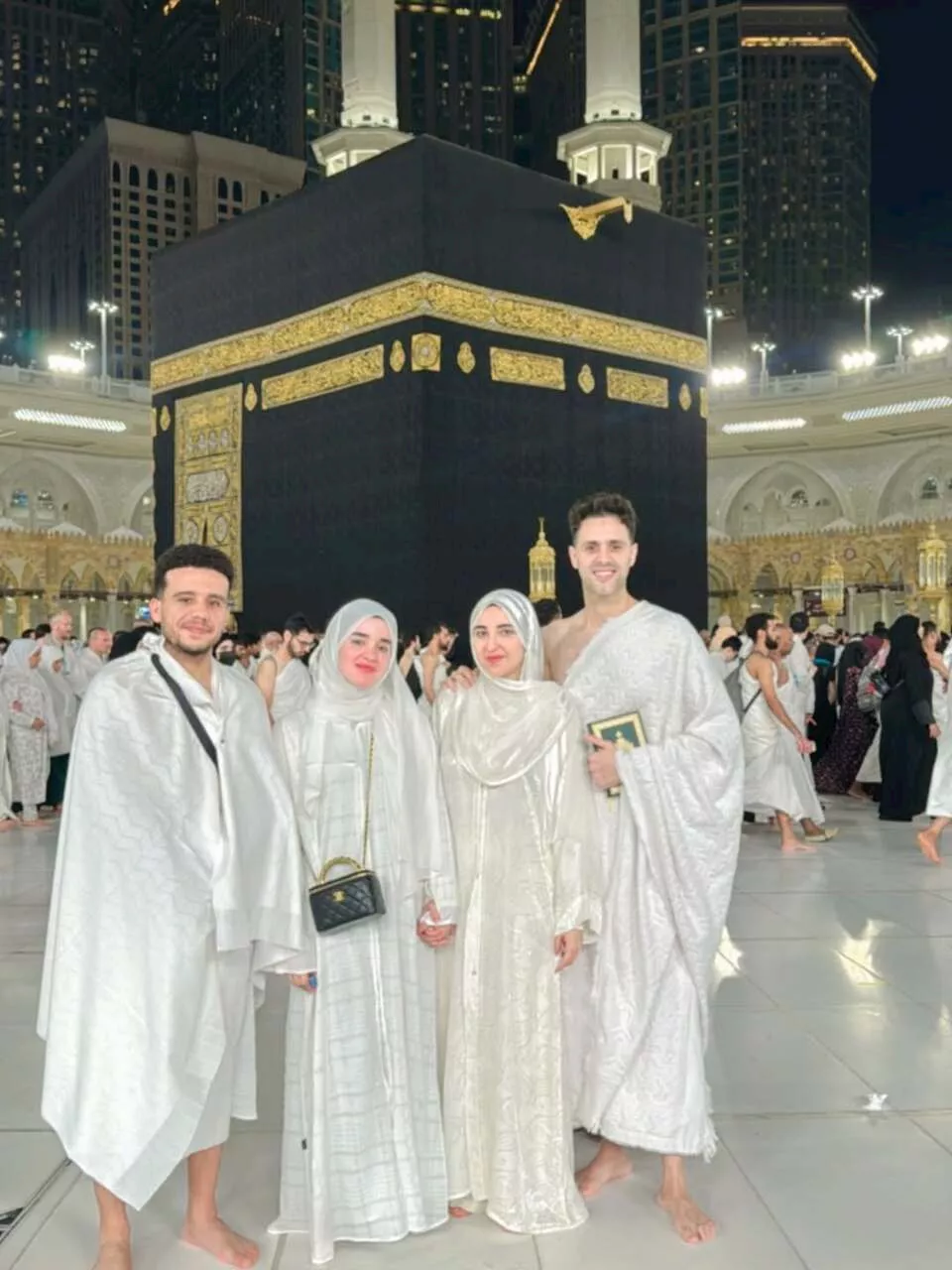 أدى مصطفى فتحي لاعب الفريق الأول لكرة القدم بنادي بيراميدز، مناسك العمرة رفقة زوجته "هبه".