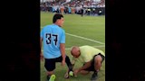لقطة إنسانية من نجم المصري مع لاعب المحلة بعد قطع حذائه في مباراة الأهلي