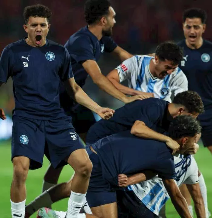 فرحة لاعبي بيراميدز بهدف وليد الكرتي بالأهلي