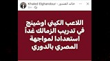 وكتب الغندور عبر حسابه على موقع التواصل الاجتماعي "فيسبوك":"اللاعب أوشينج في تدريب الزمالك غداً استعدادا لمواجهة المصري بالدوري".