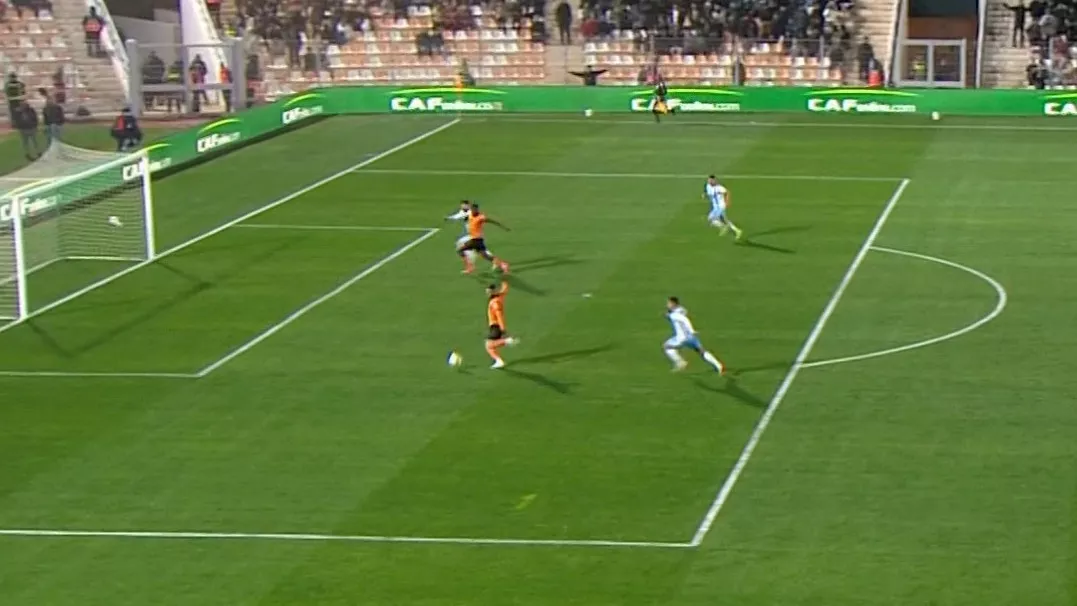 ومع انطلاق الوقت بدل الضائع، نفذ الفريق المغربي ضربة ثابتة في الدقيقة 46 اصطدمت بالحائط البشري لبيراميدز.
