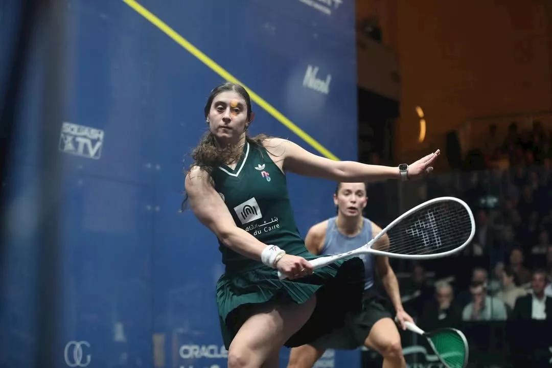 نور الشربيني تحتفل بالتأهل إلى نصف نهائي بطولة الأبطال للاسكواش بأمريكا
