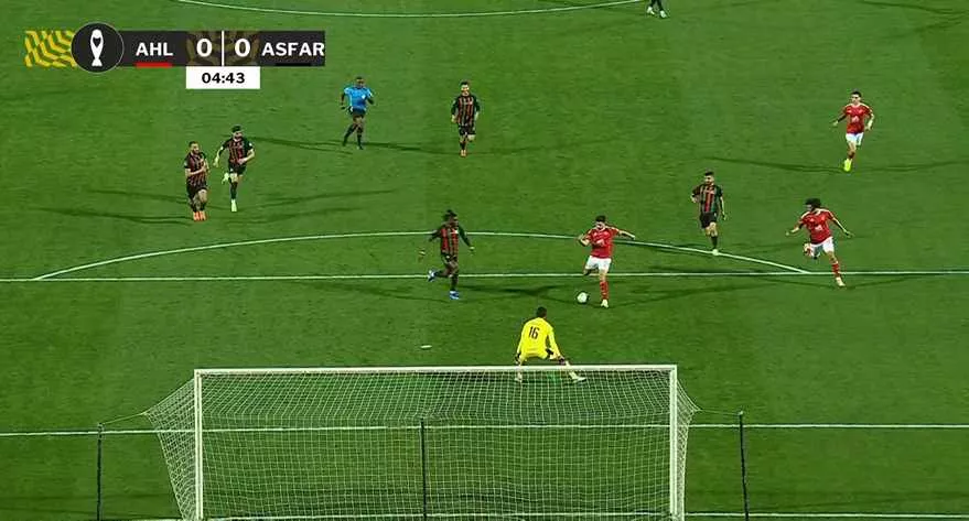 الدقيقة 5: فرصة الأول تضيع للأهلي بعد تصدي الحارس لانفراد بن رمضان