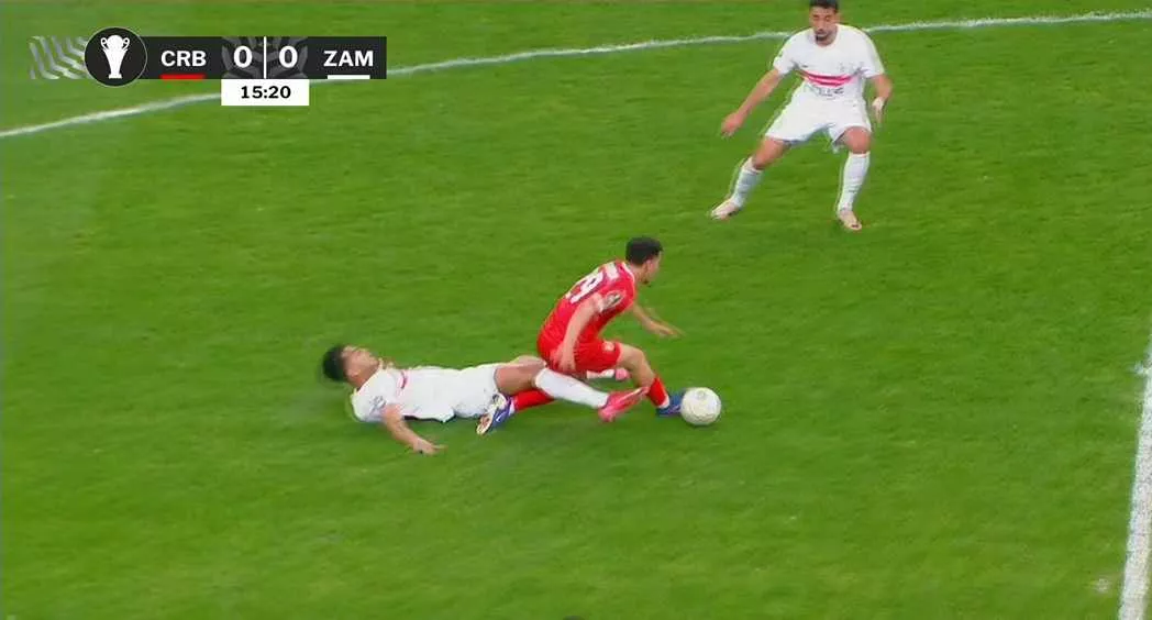 الدقيقة 5: سقوط عبد الله السعيد على أرضية الملعب، بعد تدخل مع لاعب شباب بلوزداد
